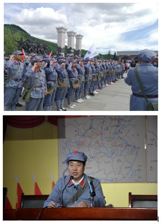 前往六盤山途中,黨員們開展了唱紅歌、講紅色故事、朗誦紅色詩詞等活動(dòng),現(xiàn)場(chǎng)氣氛十分熱烈;到達(dá)六盤山后,黨員們穿紅軍服,接過紅一、二、四方面軍軍旗,沿著象征著紅軍二萬五千里長(zhǎng)征的紅軍小道,途中經(jīng)過紅軍長(zhǎng)征經(jīng)歷的“遵義會(huì)議”、“四渡赤水”、“飛奪瀘定橋”、“巧渡金沙江”、“紅軍過草地”、“天險(xiǎn)臘子口”等大事件微縮景觀。在六盤山頂峰廣場(chǎng)三軍會(huì)師紅旗墻前,全體黨員重溫了入黨誓詞,列隊(duì)進(jìn)入紅軍長(zhǎng)征紀(jì)念館。在紀(jì)念館里,大家合唱了紅歌《歌唱祖國》,上了一次別開生面的黨課,在講解員的帶領(lǐng)下參觀革命文物陳設(shè)。再一次重溫了黨的光輝歷程,接著同志們就地吃了一頓紅軍餐,親身體驗(yàn)到了紅軍長(zhǎng)征的悲壯歷程和經(jīng)受的艱難困苦,感受偉大的長(zhǎng)征精神。