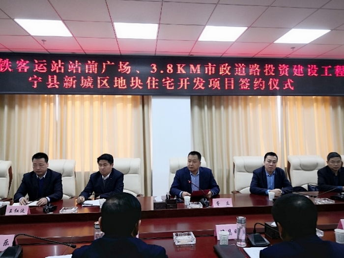 2019年12月4日,寧縣高鐵客運(yùn)站站前廣場(chǎng)、3.8KM市政道路投資建設(shè)工程及寧縣新城區(qū)地塊住宅開發(fā)項(xiàng)目簽約儀式在寧縣人民政府順利舉行。寧縣縣委書記侯昌明,縣委副書記、縣長(zhǎng)李鵬飛,縣委常委、常務(wù)副縣長(zhǎng)杜豐,縣委常委馬應(yīng)樂,發(fā)改局、自然資源局、住建局、商務(wù)局等各部門主要負(fù)責(zé)人出席儀式。公司董事長(zhǎng)胥立、總經(jīng)理張小揚(yáng)、副總經(jīng)理李紅軍、副總經(jīng)理沈?yàn)槊?、副總?jīng)濟(jì)師王紅波出席簽約儀式,相關(guān)部門經(jīng)理和工作人員隨行。