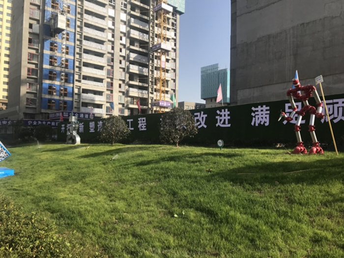 巧布園林式工地。項(xiàng)目在主題施工過(guò)程中就對(duì)園林景觀部分已穿插施工完成了一半,實(shí)現(xiàn)了真正意義的“園林工地”。