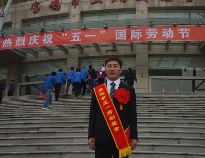 4月30日,寶雞市勞動(dòng)者之歌暨慶?!拔逡弧眹H勞動(dòng)節(jié)大會(huì)勝利召開,公司劉延強(qiáng)同志被授予“寶雞市五一勞動(dòng)獎(jiǎng)?wù)隆惫鈽s稱號(hào),公司在總部辦公樓前舉行了簡樸隆重的歡迎儀式。公司副董事長、總經(jīng)理胥立,黨委書記景旭東,工會(huì)主席王建成等出席儀式,總部全體、寶雞文化藝術(shù)中心項(xiàng)目部管理人員參加。