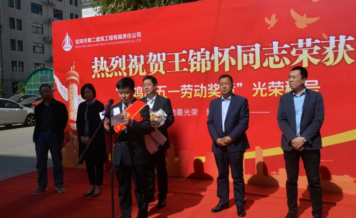 4月27日上午,寶雞市慶?!拔逡弧眹?guó)際勞動(dòng)節(jié)大會(huì)在萬(wàn)福酒店召開,公司第三十四項(xiàng)目部項(xiàng)目經(jīng)理王錦懷同志榮獲寶雞市“五一勞動(dòng)獎(jiǎng)?wù)隆惫鈽s稱號(hào)。公司在總部辦公樓前舉行了歡迎儀式,公司董事長(zhǎng)胥立、總經(jīng)理張小揚(yáng)、黨委書記景旭東、黨委副書記王紅衛(wèi)、工會(huì)主席王建成等領(lǐng)導(dǎo)出席,總部全體人員、第三十四項(xiàng)目部員工代表參加。