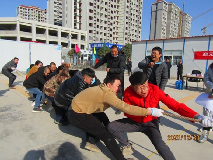 2020年12月31日,秦漢和苑項目部聯合西安國采、陸港·金海岸兩個兄弟項目在秦漢和苑項目生活區(qū)內開展了“迎新年·慶元旦”文體活動。70余名項目部員工參加。