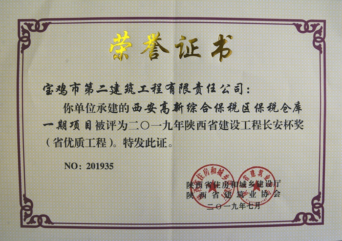 2019年陜西省建設(shè)工程長(zhǎng)安杯獎(jiǎng)(西安高新綜合保稅區(qū)保稅倉庫一期項(xiàng)目)