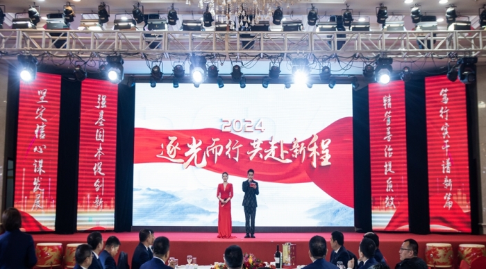 集團公司高層領(lǐng)導(dǎo)、中級管理人員、受表彰獎勵的優(yōu)秀單位和個人、總部全體及2023年度新員工,共計300余人參加了會議。副總經(jīng)理、總會計師嚴海軍主持會議。