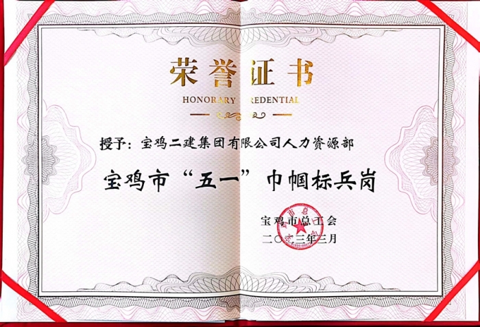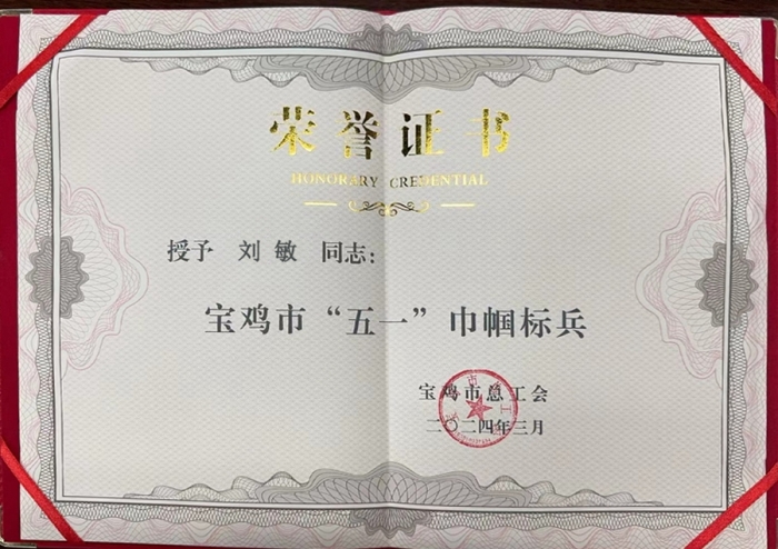 3月8日,在寶雞市總工會召開的第七屆二次女職委全委會上,第十七項(xiàng)目部女職工劉敏被授予“五一巾幗標(biāo)兵”稱號。集團(tuán)公司始終為女職工提供干事創(chuàng)業(yè)的廣闊舞臺,多年來,先后有14名女職工獲得各級各類巾幗標(biāo)兵稱號,2個集體被授予“五一巾幗標(biāo)兵崗”。