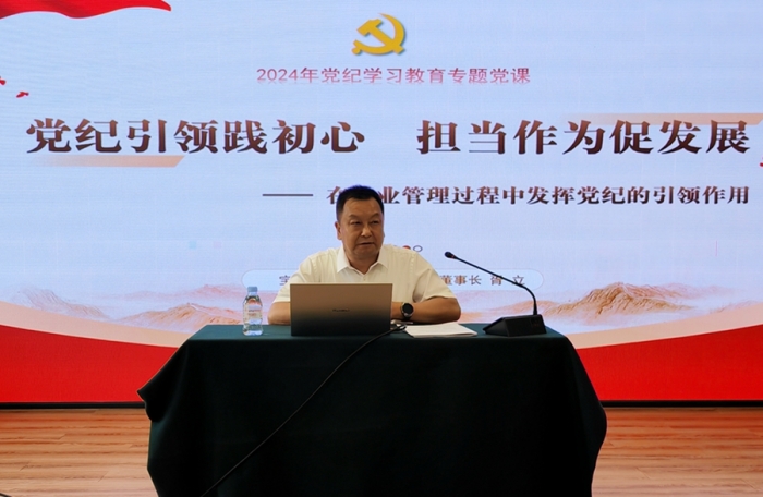 黨委書記、董事長胥立講授題為《黨紀(jì)引領(lǐng)踐初心 擔(dān)當(dāng)作為促發(fā)展》的黨紀(jì)學(xué)習(xí)教育專題黨課。他從認(rèn)識黨紀(jì)的重要性、深學(xué)細(xì)悟“六項(xiàng)紀(jì)律”、加強(qiáng)黨紀(jì)建設(shè)的要求、在管理中貫徹黨紀(jì)的思考和實(shí)踐四個方面進(jìn)行了講解,并與現(xiàn)場人員進(jìn)行了互動交流。