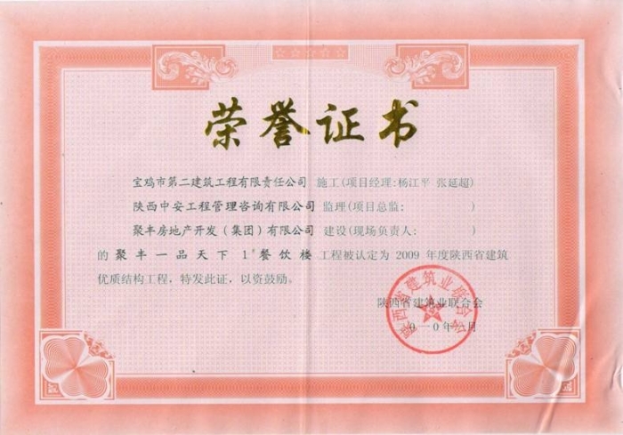 2010年省級優(yōu)質(zhì)結(jié)構(gòu)(聚豐)
